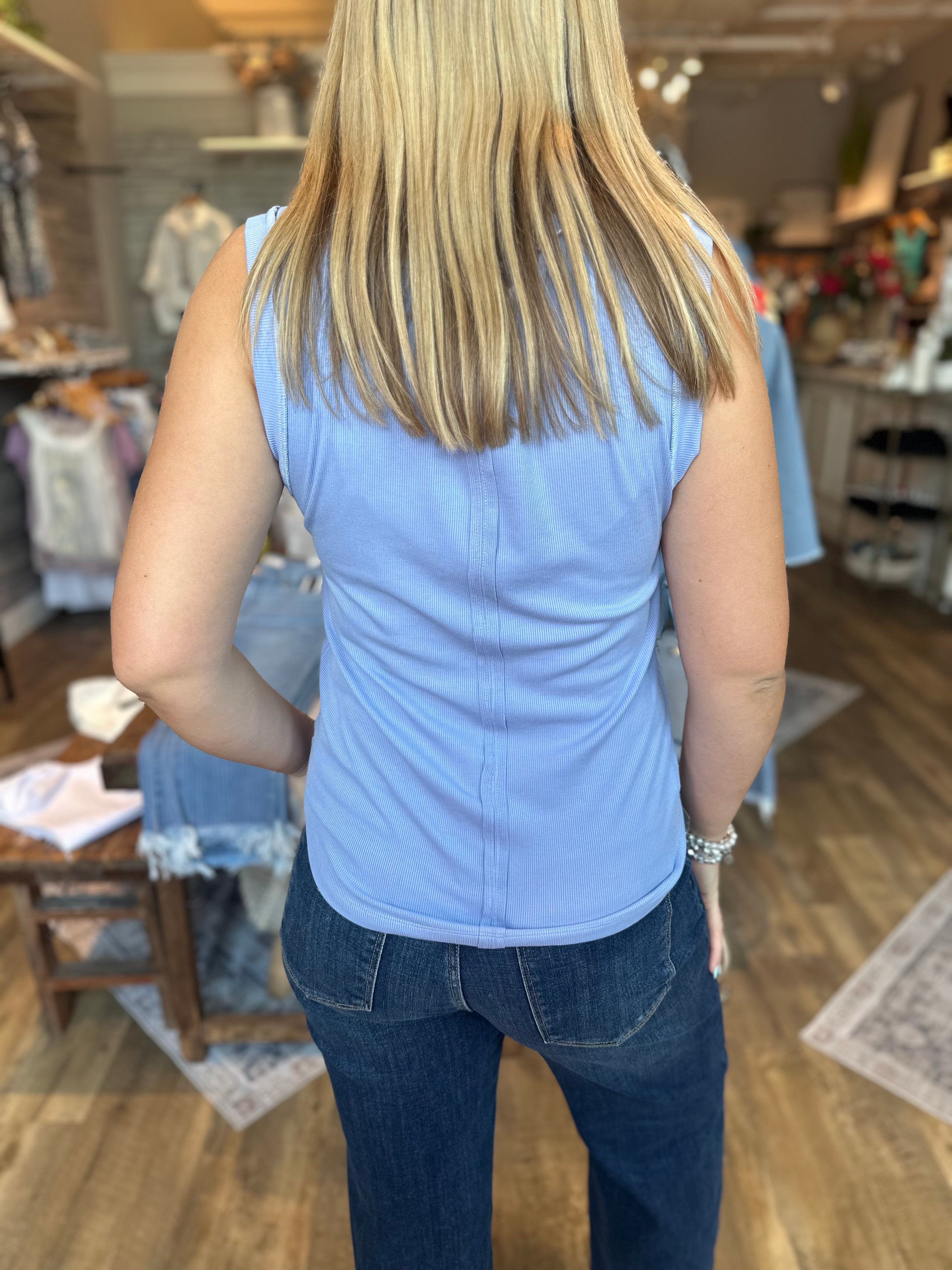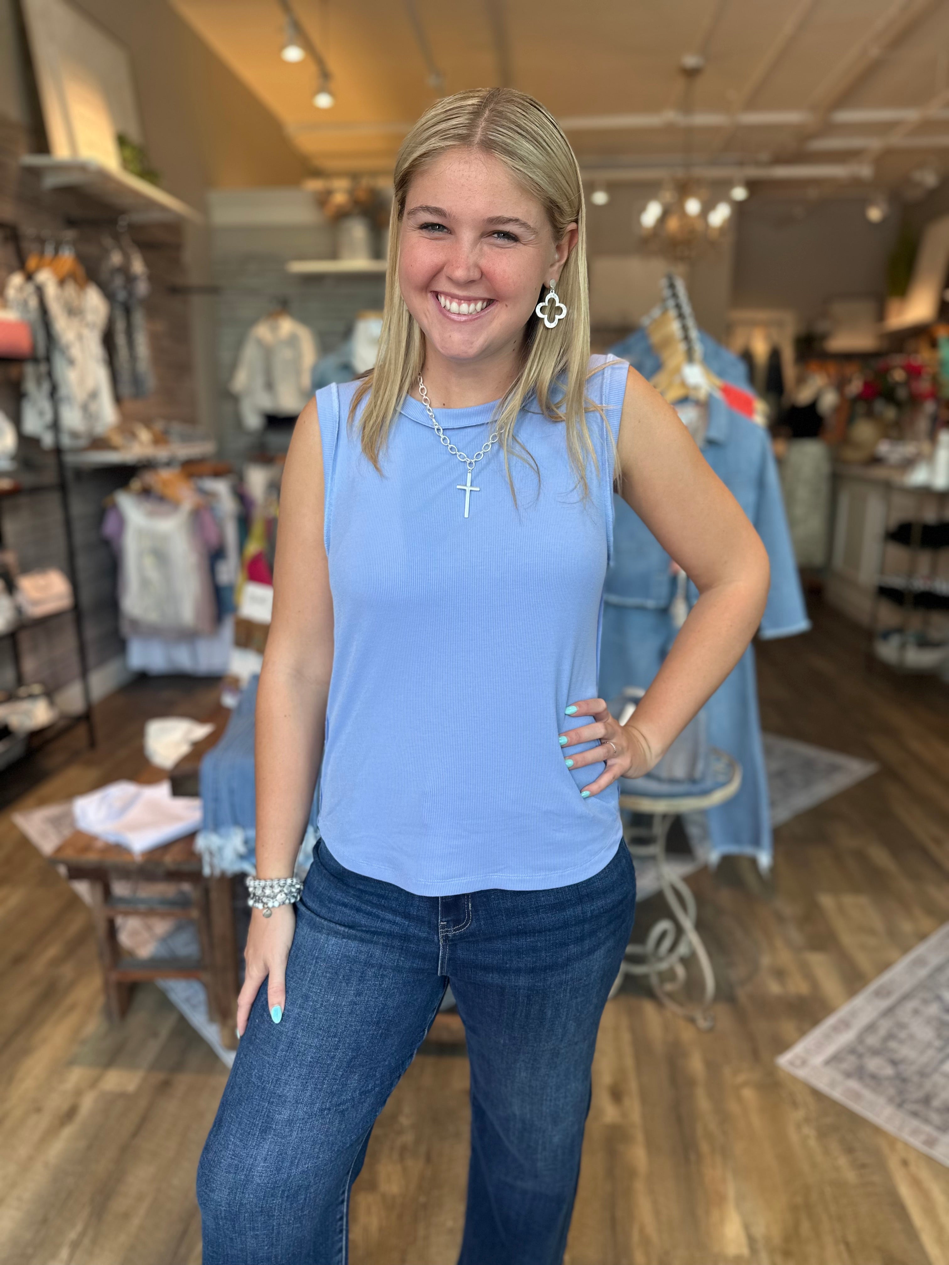 This light blue women’s tank top combines the comfort of a cotton blend with a stylish muscle tee cut. Featuring a relaxed fit and soft, breathable fabric, it's perfect for layering or wearing solo on warm days.