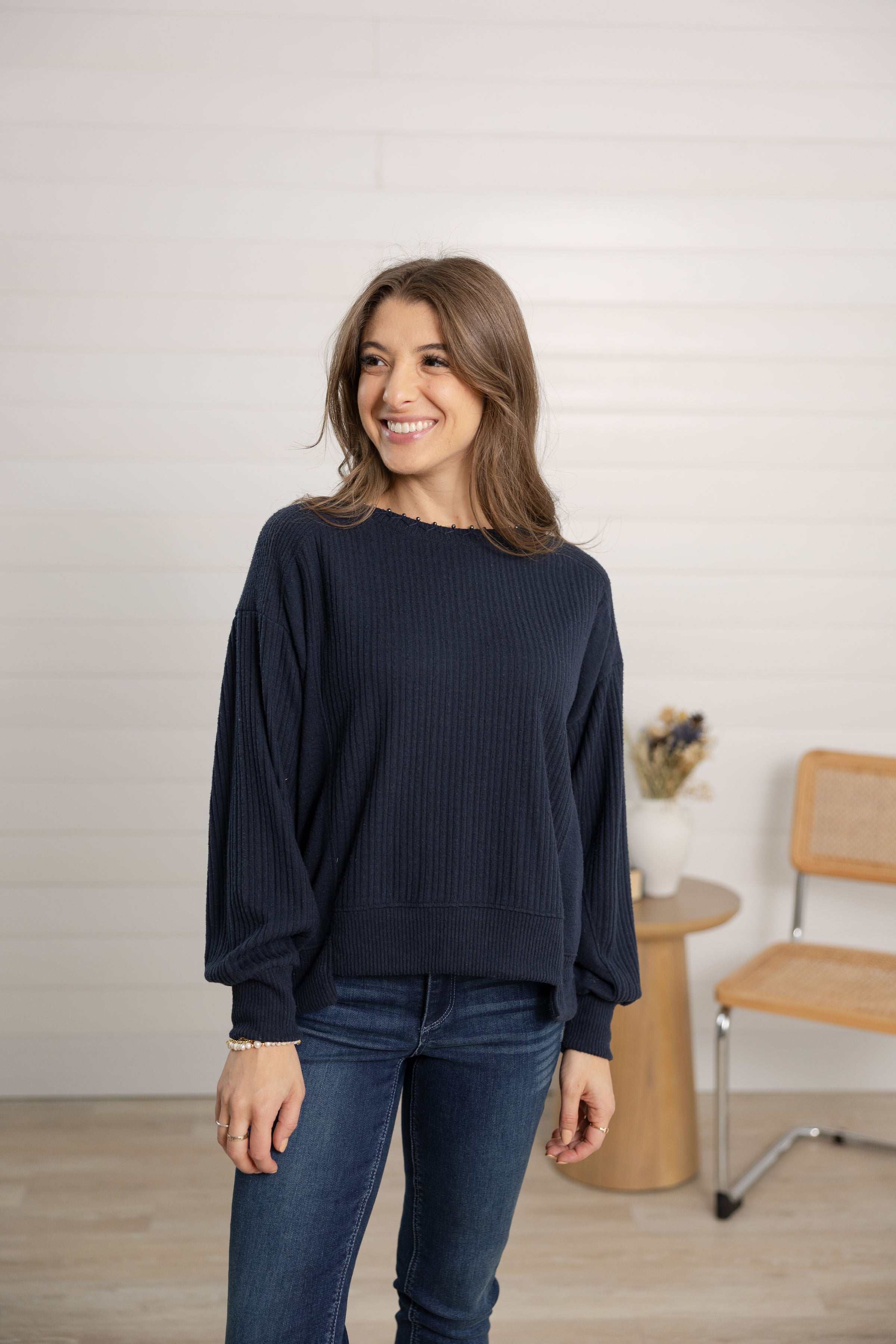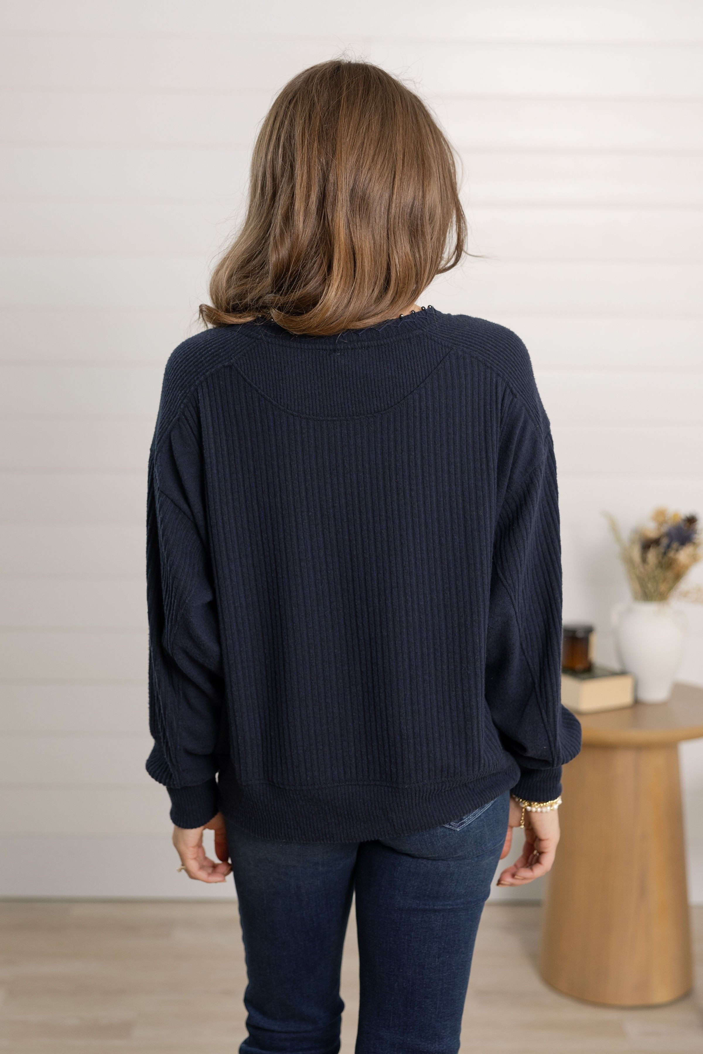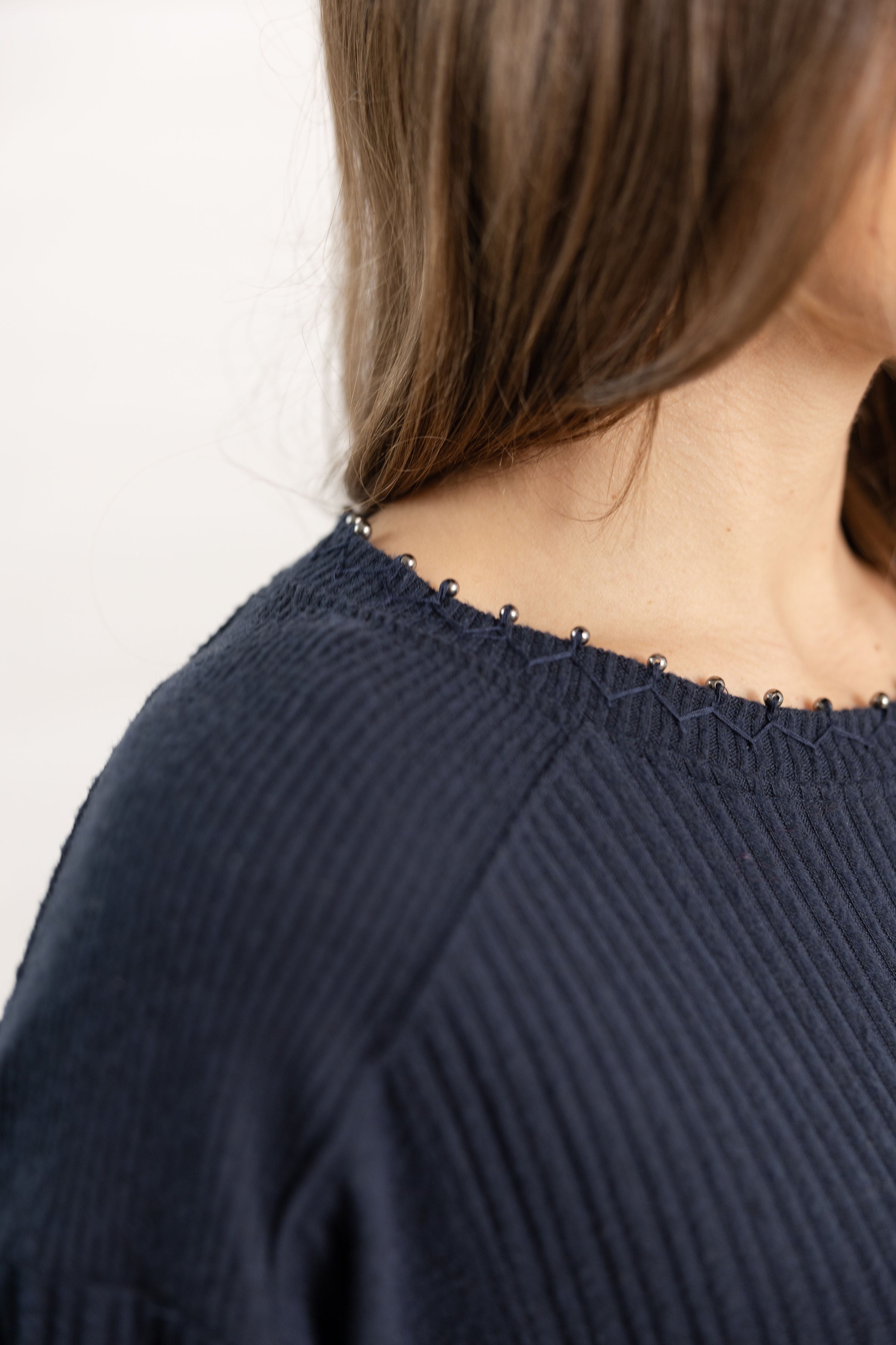 Pearl Detail Scoop Neck Long Sleeve Top