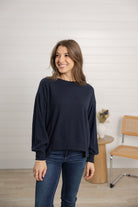 • Long banded dolman blouson sleeve