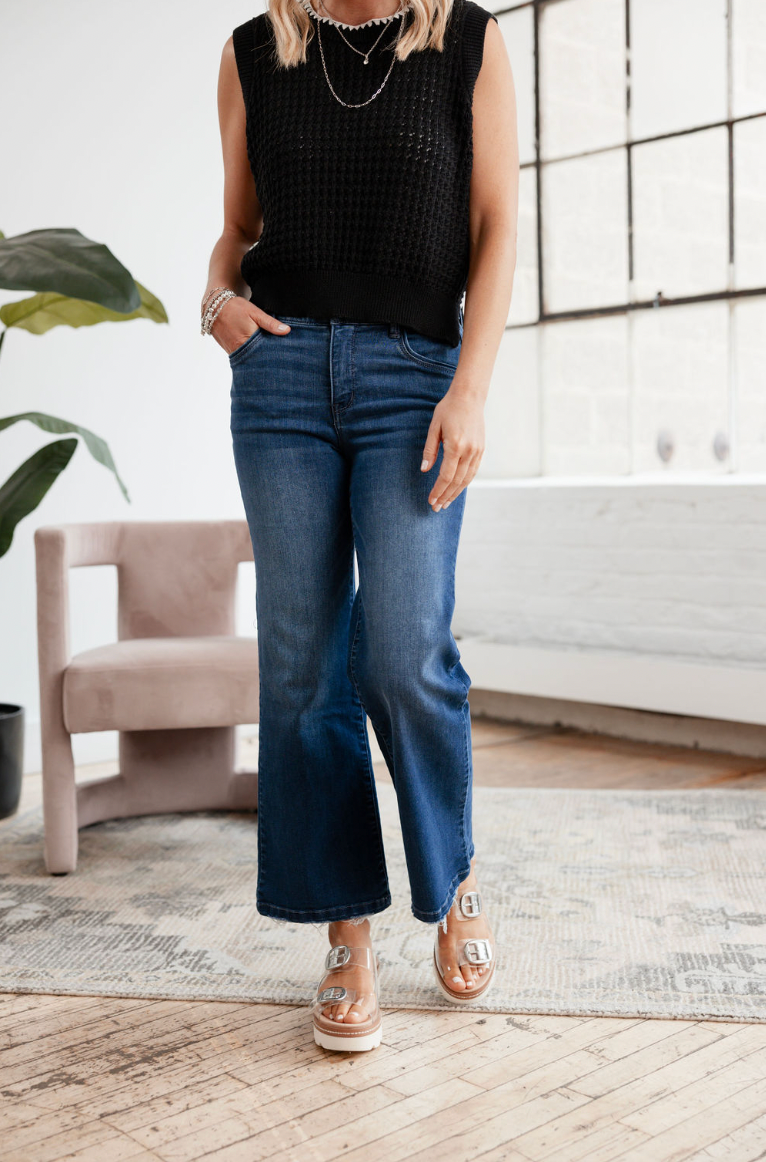 Add effortless style to your wardrobe with these chic wide-leg denim jeans. Featuring a 27" inseam, a flattering 9.5" rise, and a statement 21" leg opening, these jeans offer a relaxed yet polished fit that’s perfect for any occasion. The subtle grinded hem detail adds a modern, lived-in touch, making them perfect for casual outings or styled up with your favorite pieces. Crafted in a rich indigo wash, these jeans are versatile and timeless, ideal for pairing with anything from cozy sweaters to sleek tanks. A true must-have for any denim lover!