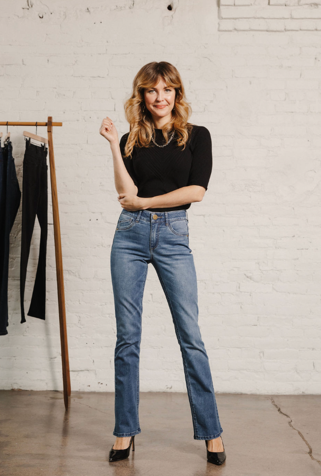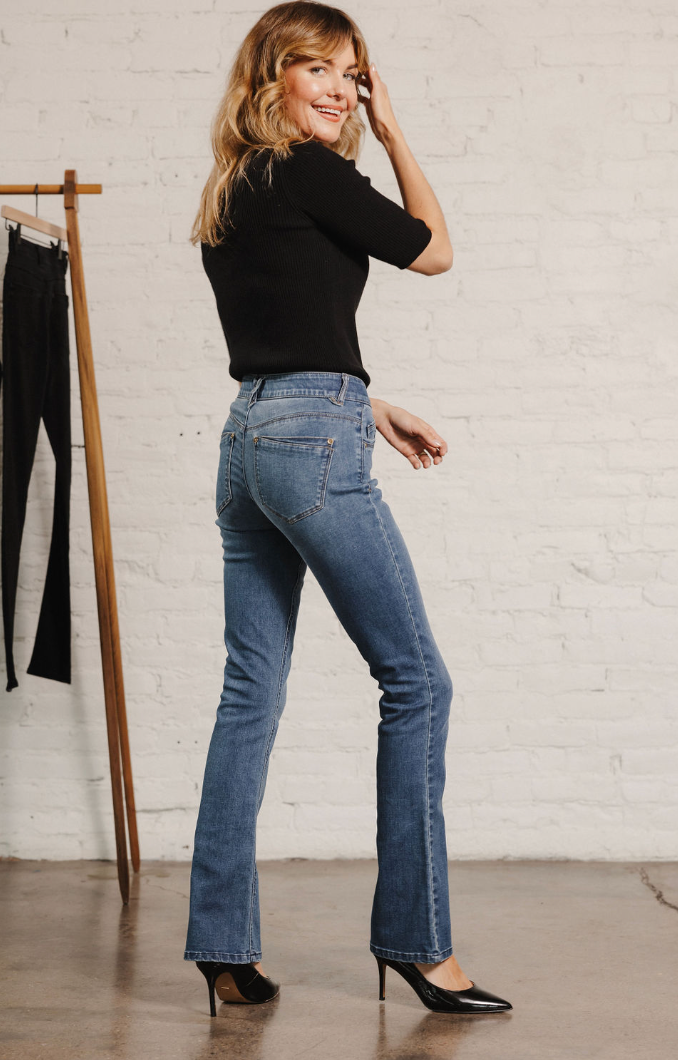 Elevate your denim collection with the Mac and Me Itty Bitty Boot jeans. These stylish jeans feature a subtle bootcut that perfectly balances modern chic and classic elegance. Designed with a 9.5” rise, a 32” inseam, and an 18” leg opening, they provide a flattering fit and sophisticated appeal. The classic blue wash and sleek silhouette make these jeans a versatile wardrobe staple, ideal for any occasion.