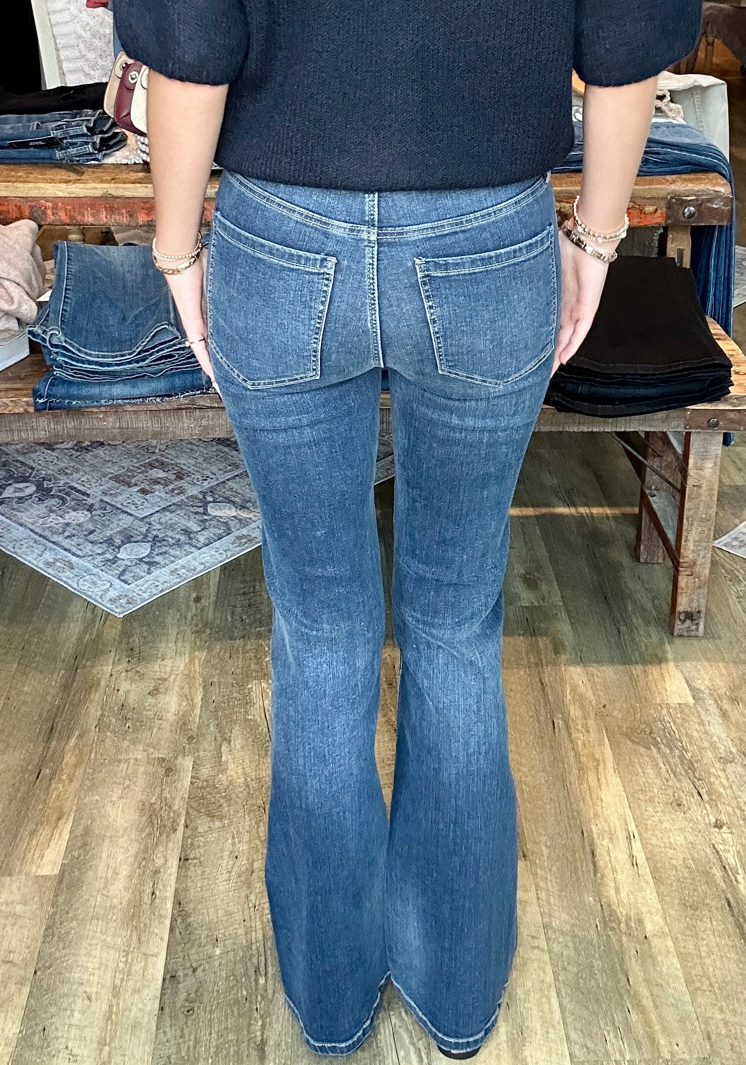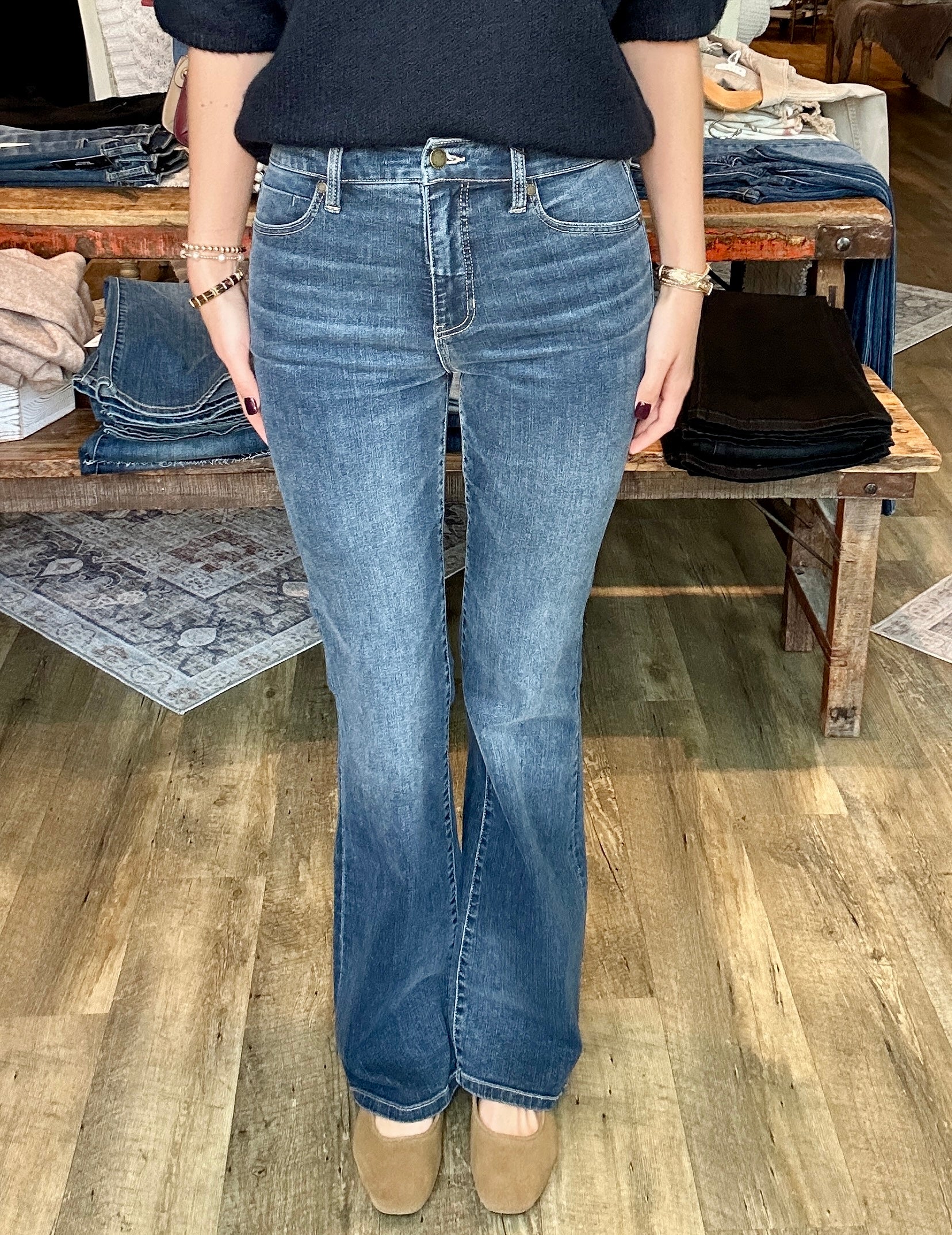 Our high-rise bootcut jeans in our Bella Vista wash are slim through the hips and thighs and release at the knee and leg opening to create the beautiful bootcut shape.