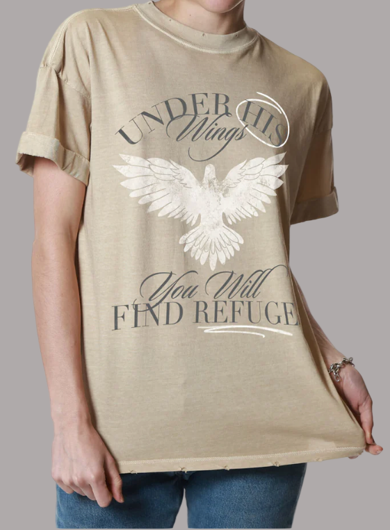 The inspiration and words from this tee is from Psalm 91:4, "He will cover you with his feathers, and under his wings you will find refuge; his faithfulness will be your shield and rampart." (NIV). Designed in neutral colors for fall and a positive reminder - our goal with all Mac and Me tees.
