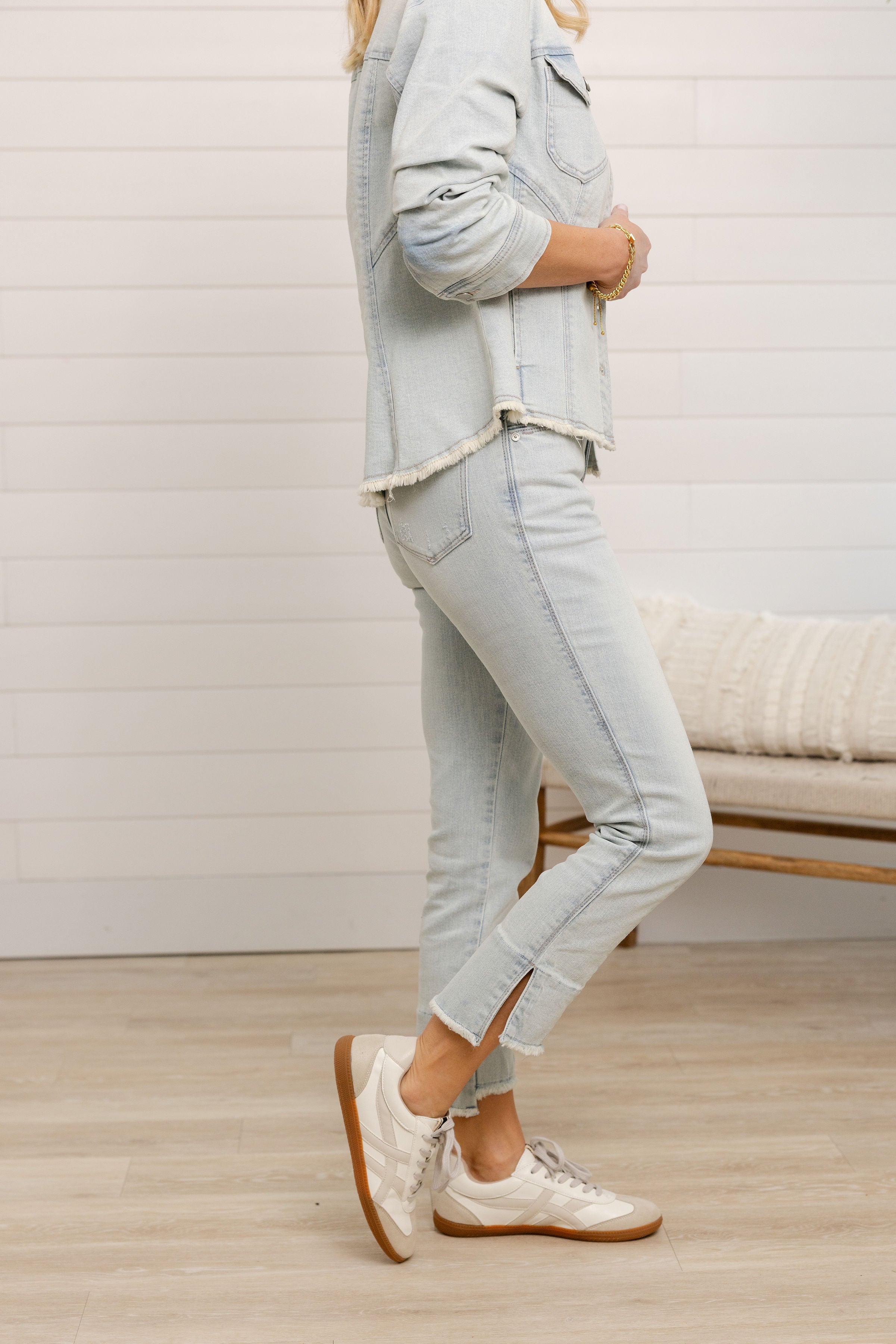 Mac and Me Kick Flare Denim with Slit Fray Hem