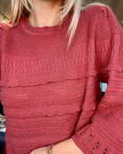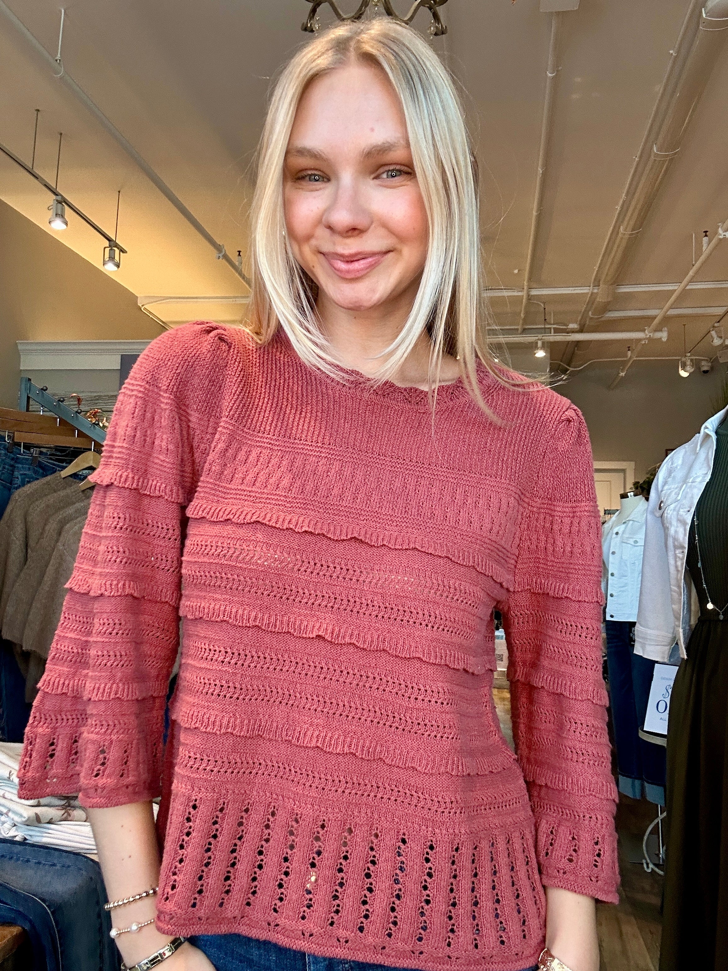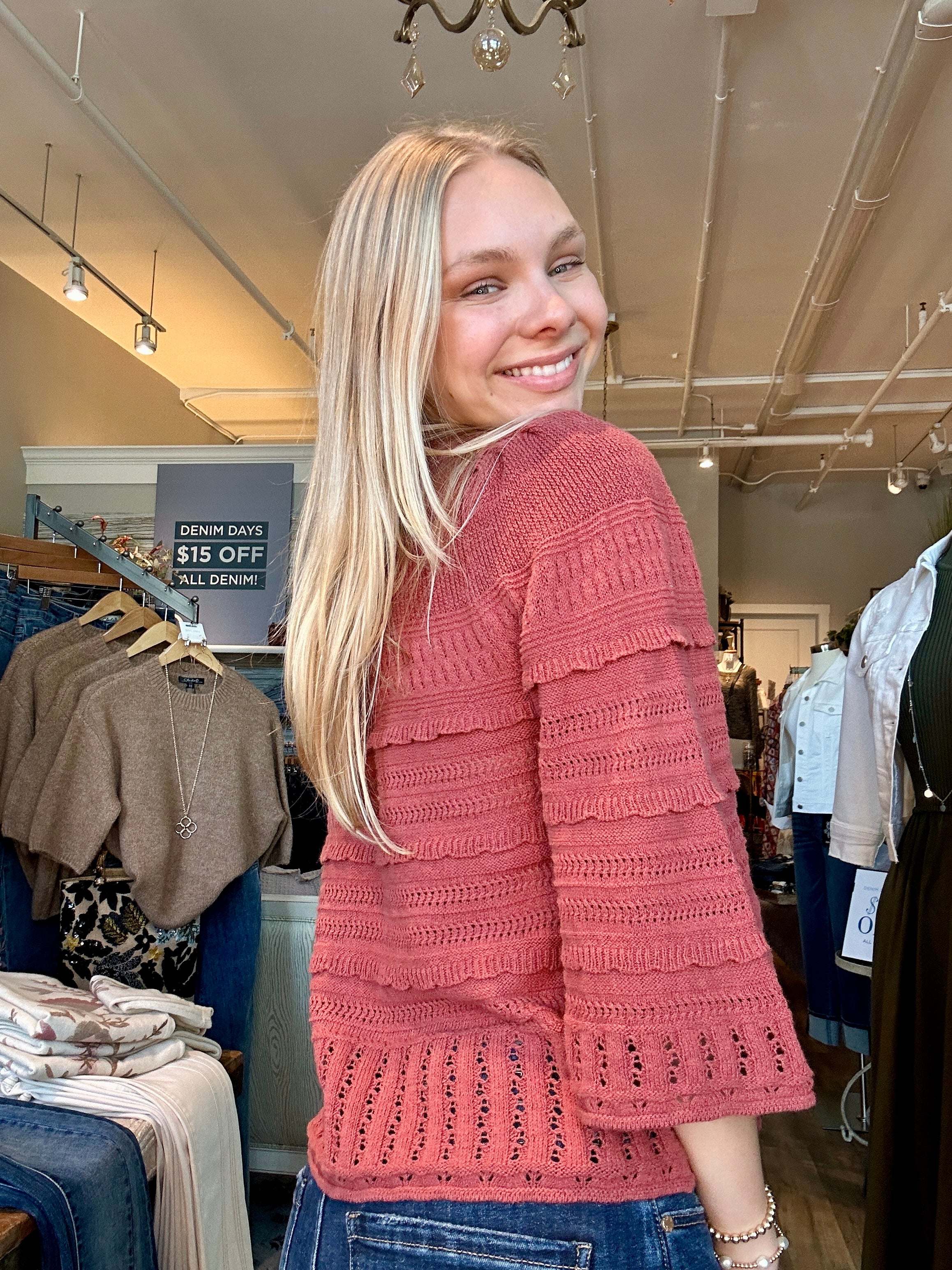 3/4 Bell Sleeve Sweater with Crochet Edge