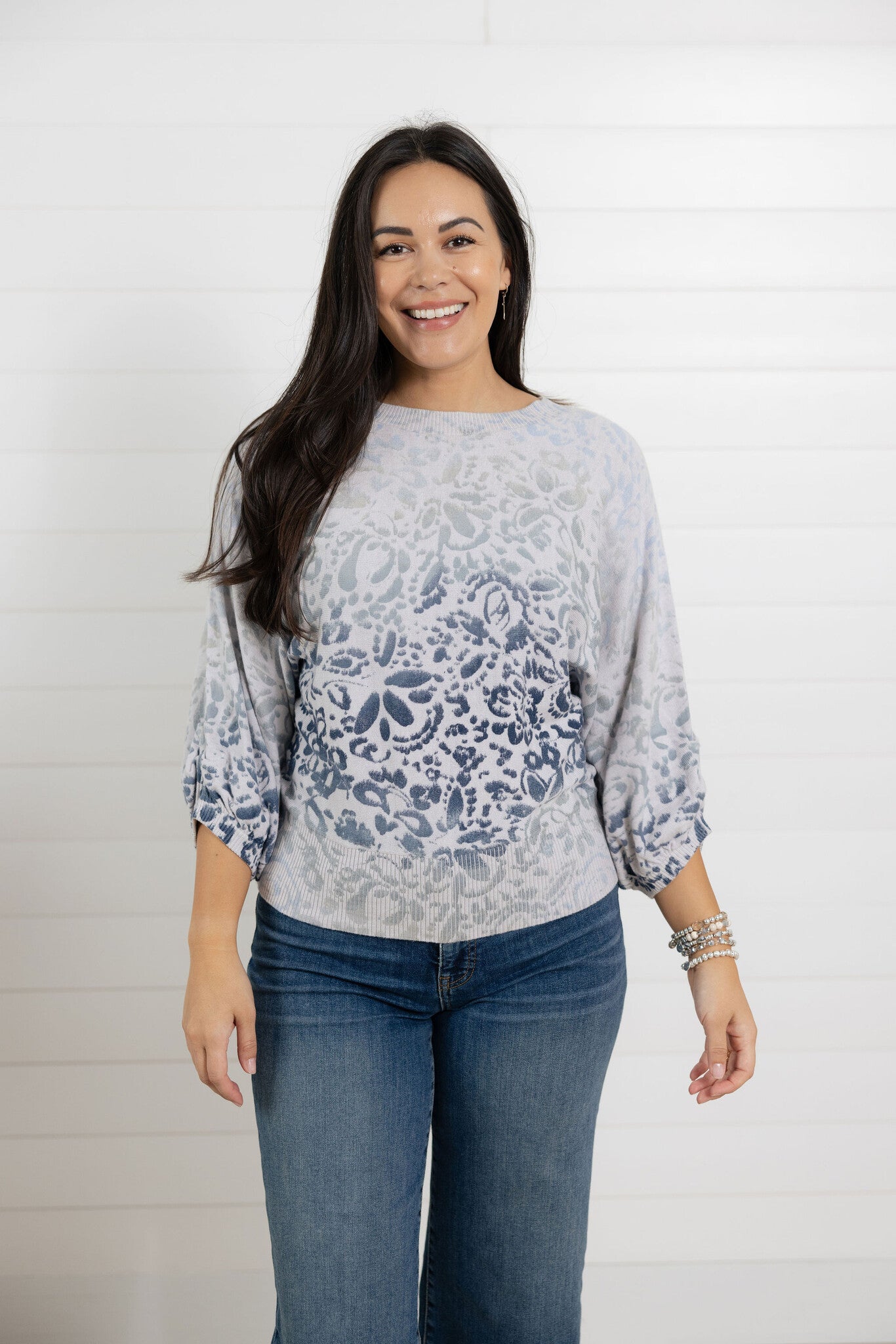 3/4 Dolman Blouson Sleeve Sweater