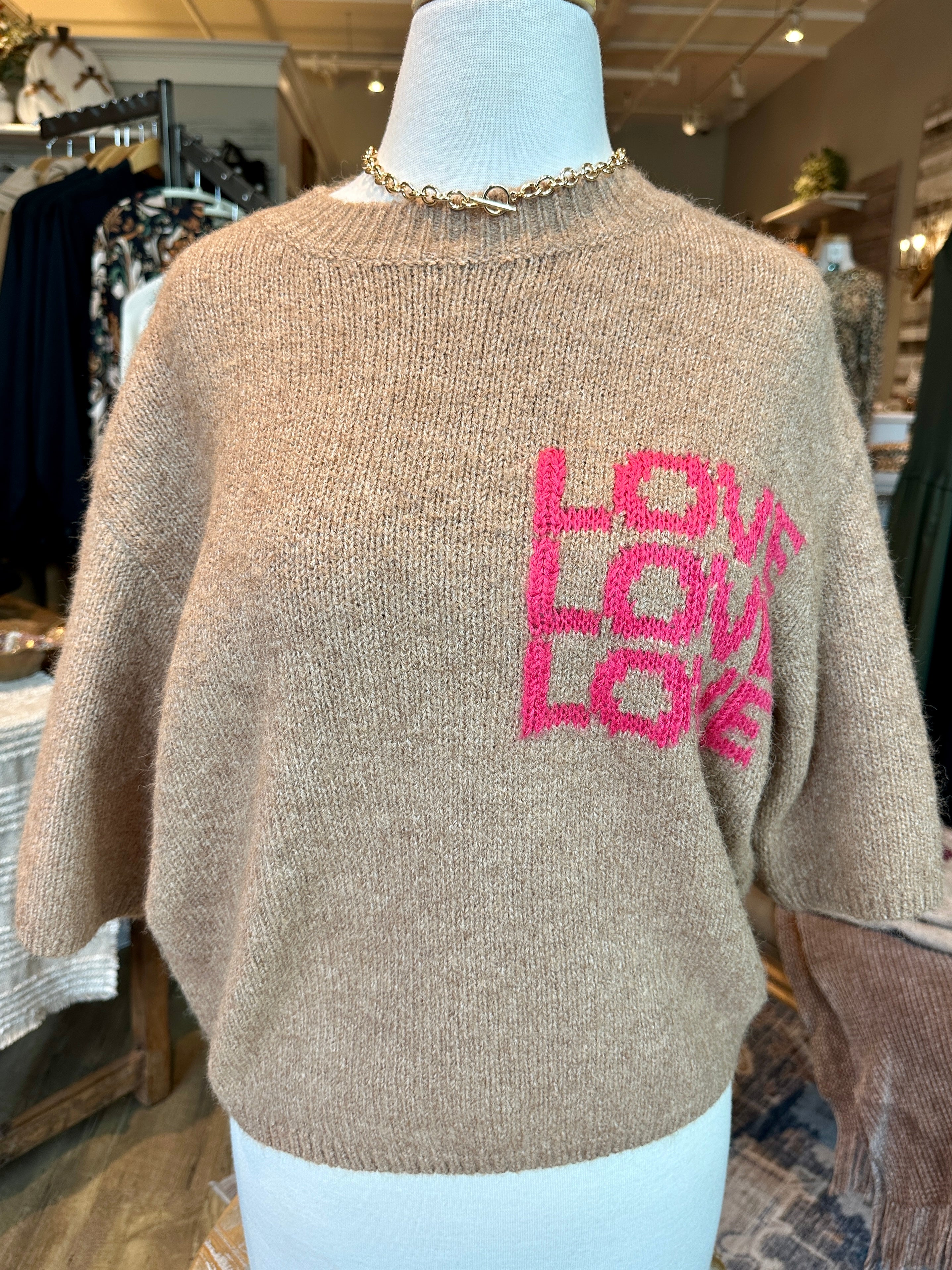 Elbow Sleeve Sweater with Knit LOVE Graphic
