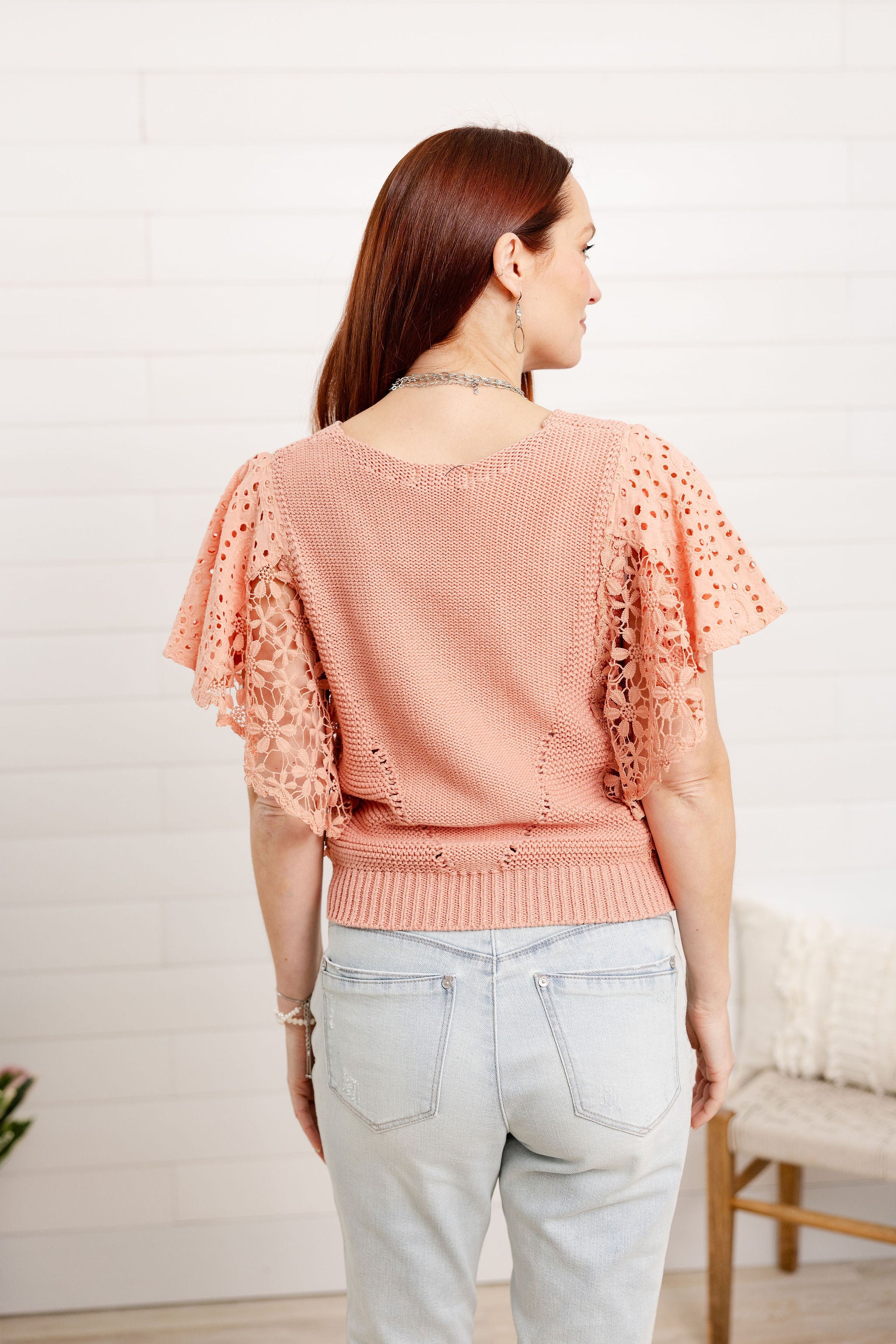 Flutter Sleeve V-Neck Short Sleeve Sweater