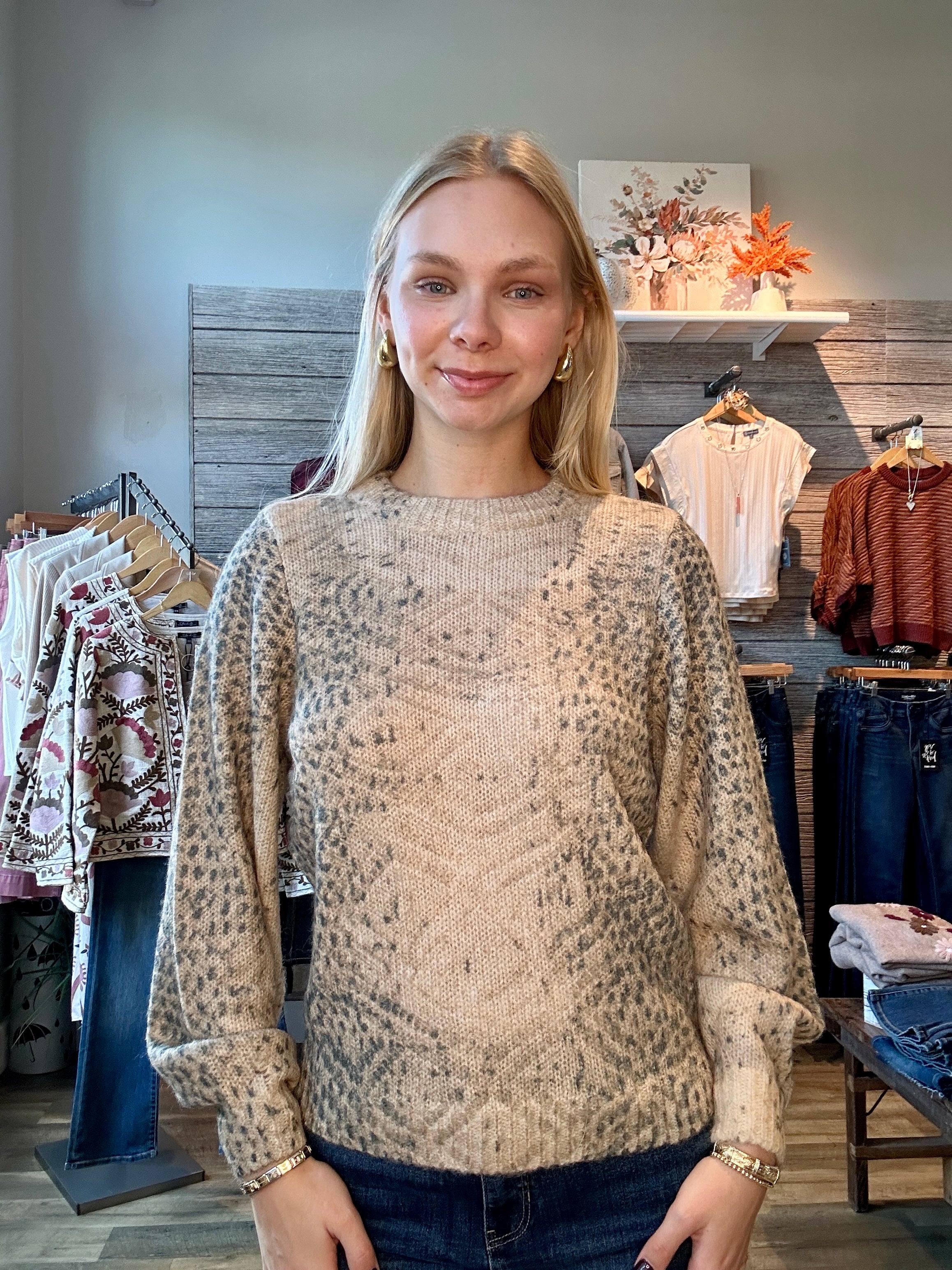 Stay effortlessly chic and cozy in this soft knit sweater featuring a neutral beige base with subtle speckled detailing. Designed with a relaxed fit, crew neckline, and gently ballooned sleeves, it’s the perfect blend of comfort and style. Pair it with your favorite jeans or layer it over a collared shirt for a polished fall look that feels as good as it looks.