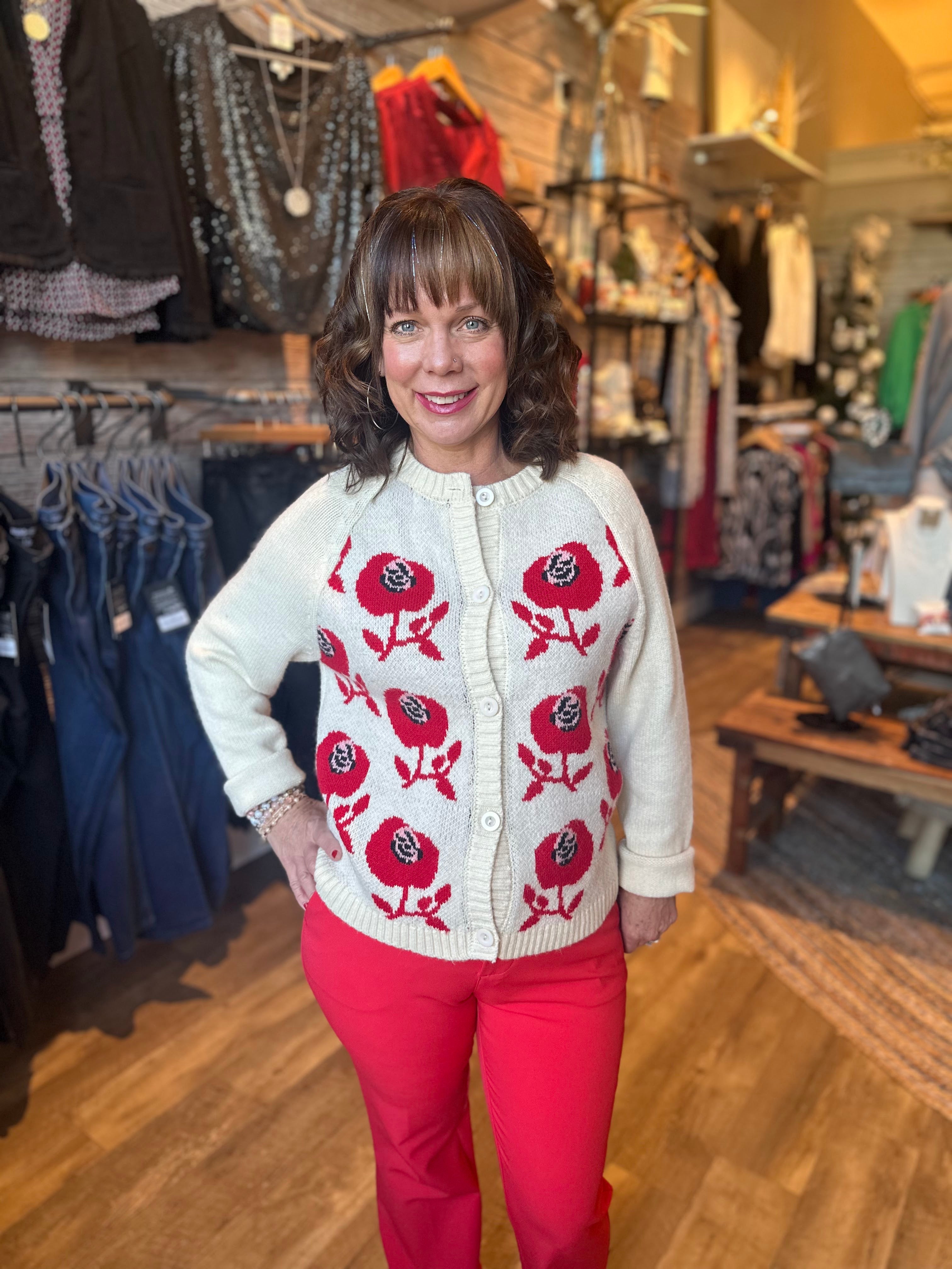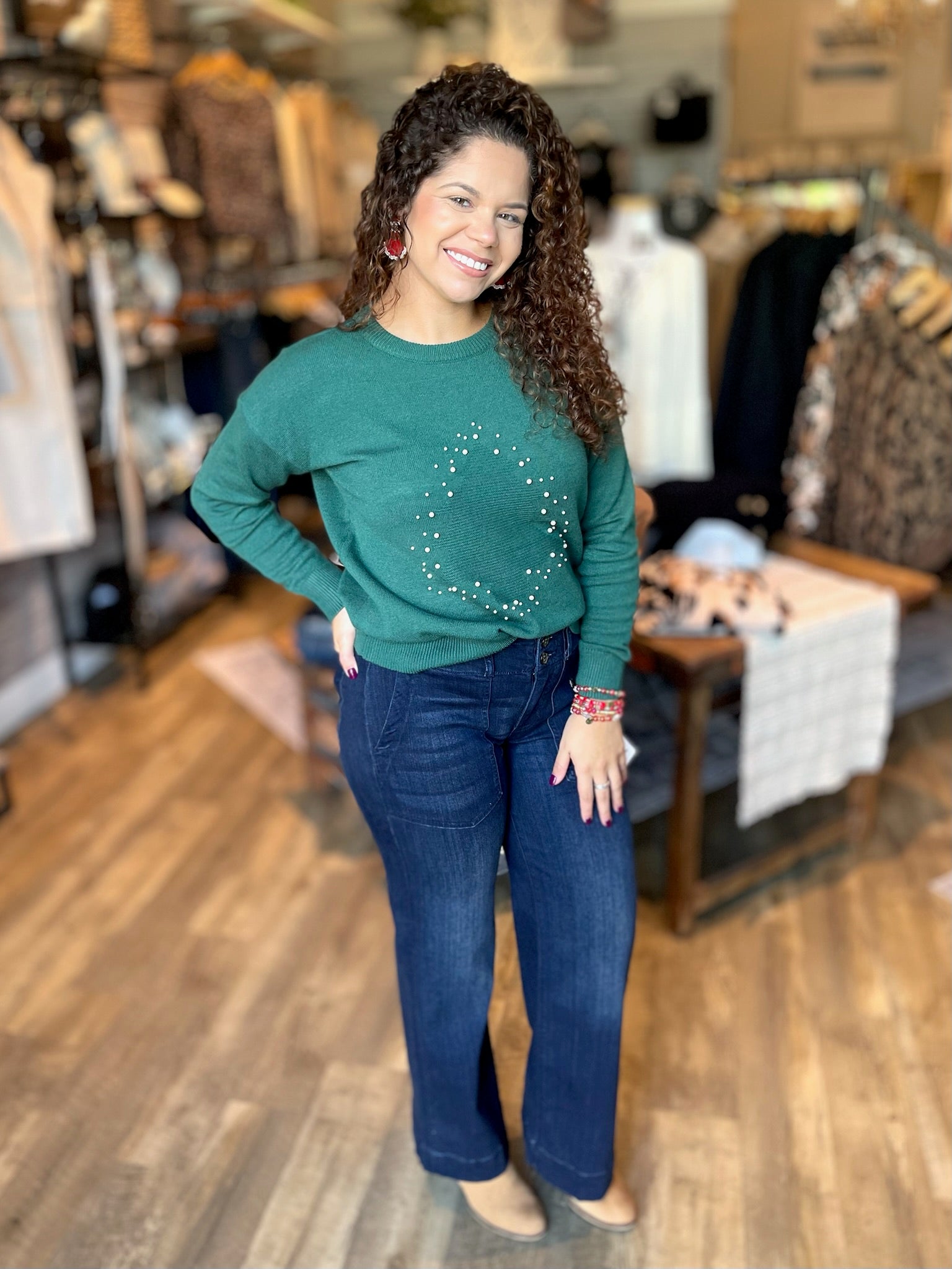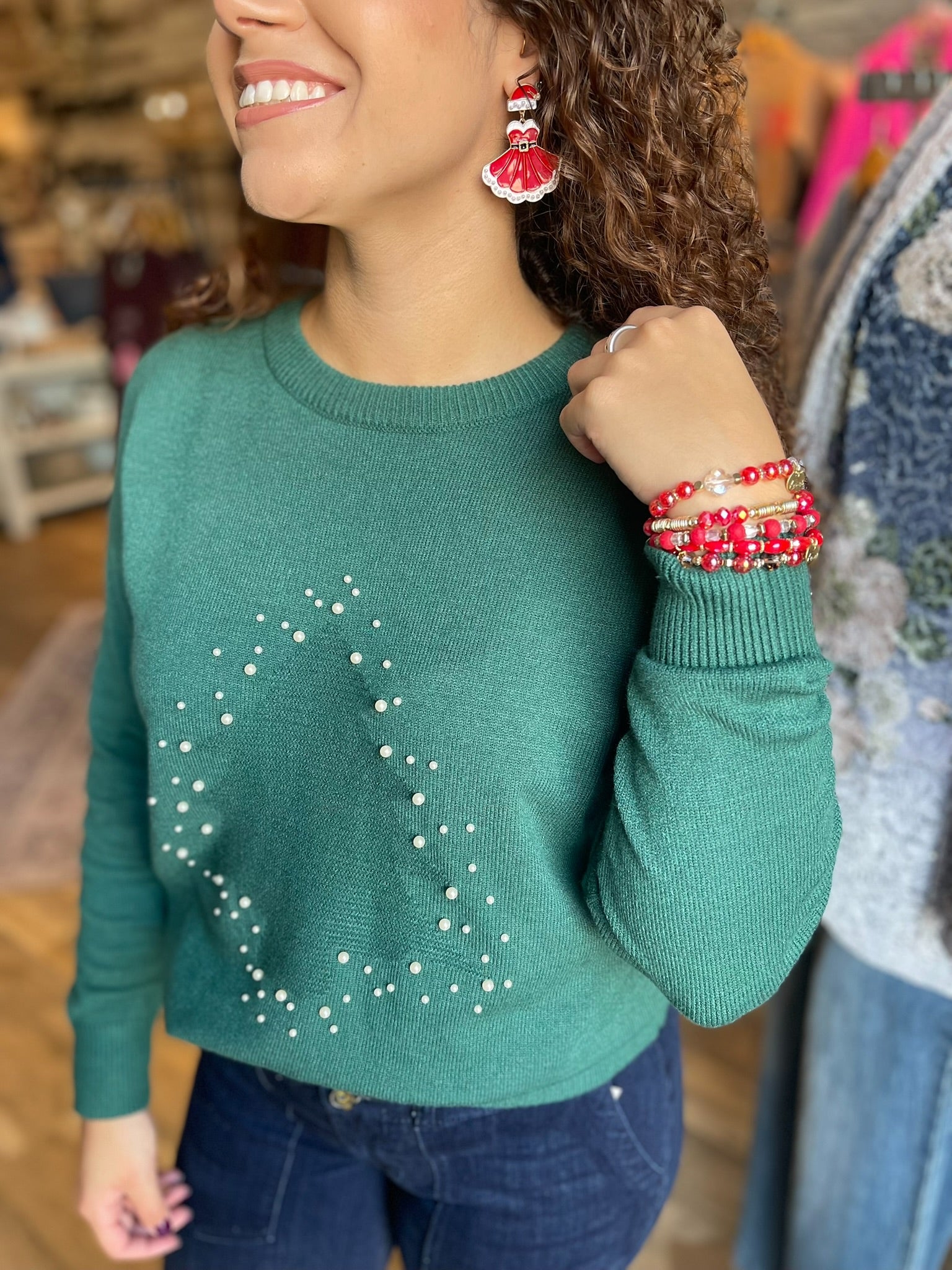 Christmas Tree Crew Neck Pullover Sweater with Pearls