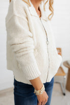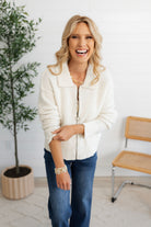 This ivory sweater is a timeless staple that keeps you looking effortlessly chic wherever you go. Designed with a front zipper and a playful collar, it adds just the right touch of fun and flair to your wardrobe.
