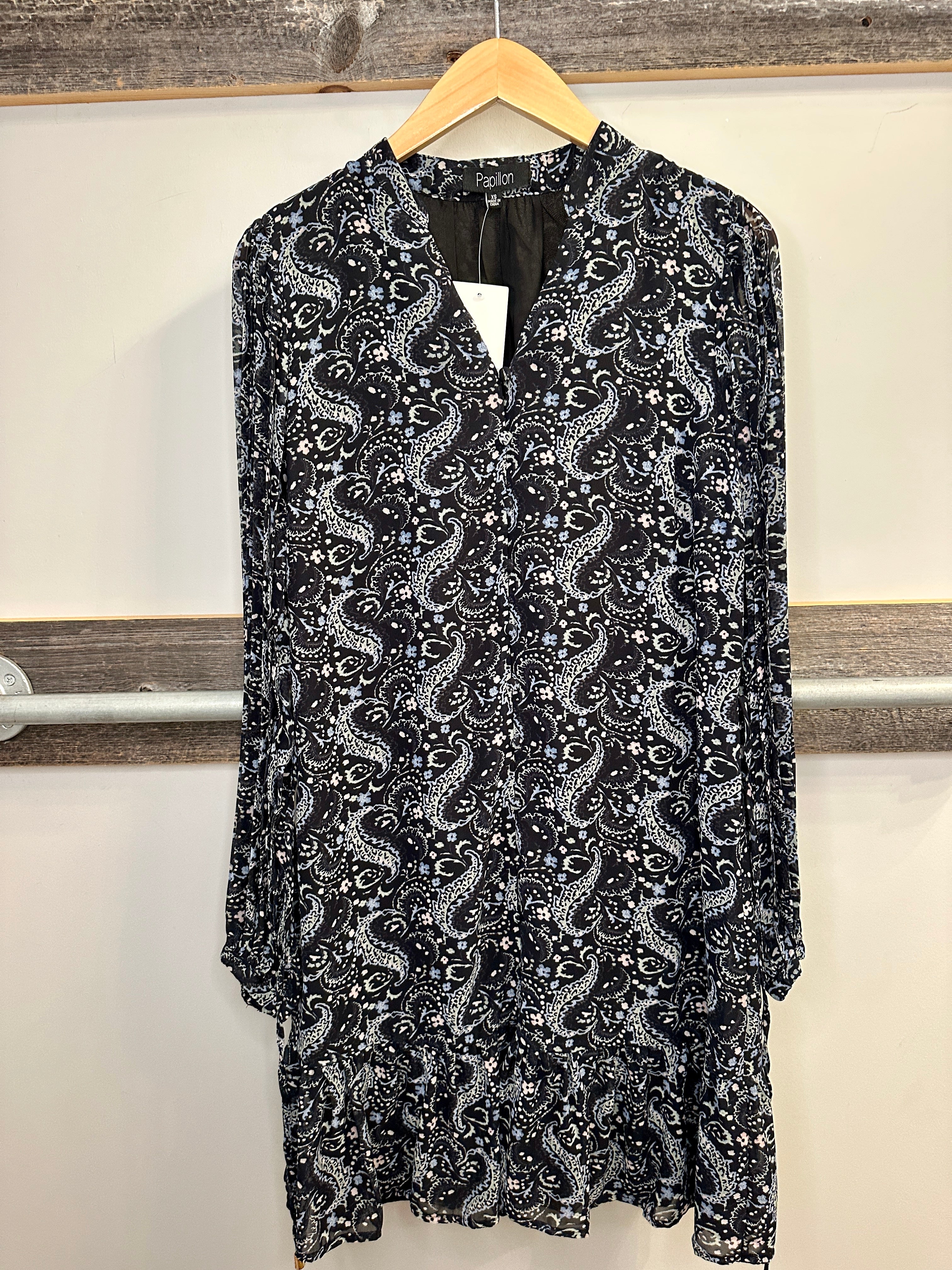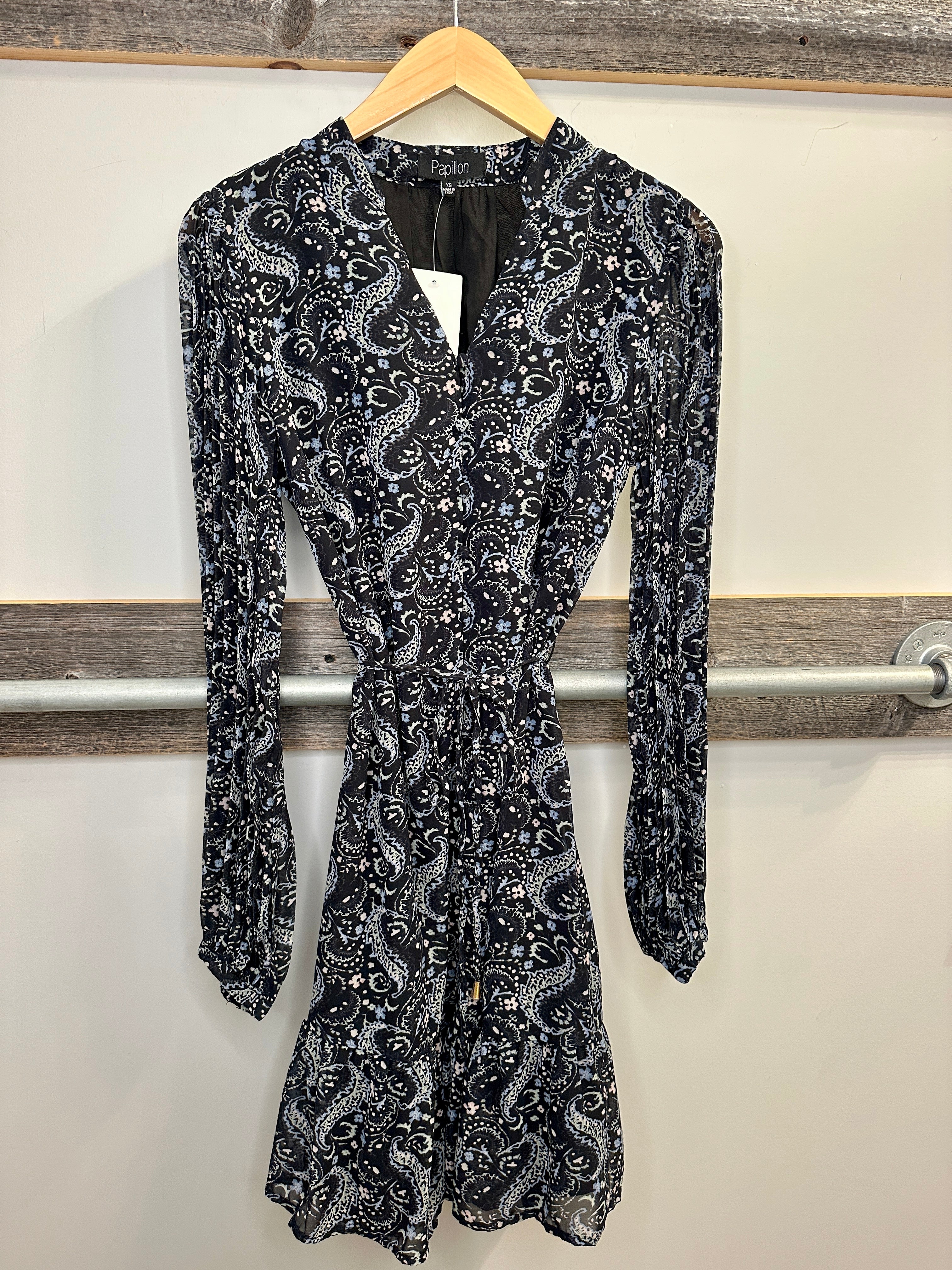 Long Sleeve Dress with Ruffle Hem and Tie Belt
