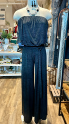 This wide leg strapless jumpsuit is a true statement piece with its sleek silhouette. The strapless neckline highlights the shoulders and collarbone, creating an effortlessly elegant look, while the wide leg cut drapes beautifully for a long, flowy finish. Finished with a ring belt at the waist, this jumpsuit balances structure and movement, making it both flattering and comfortable.