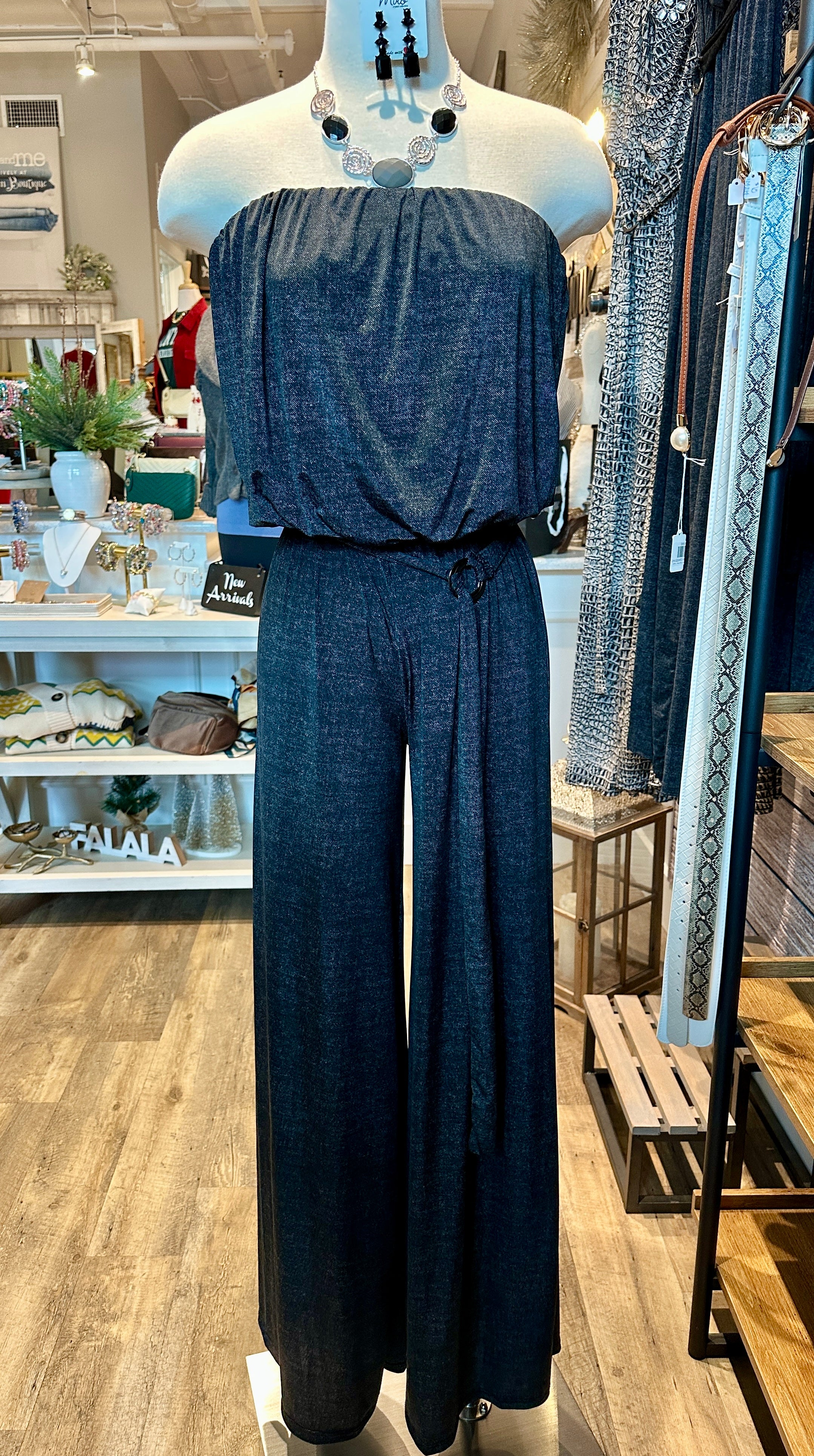 Wide Leg Strapless Jumpsuit with Ring Belt
